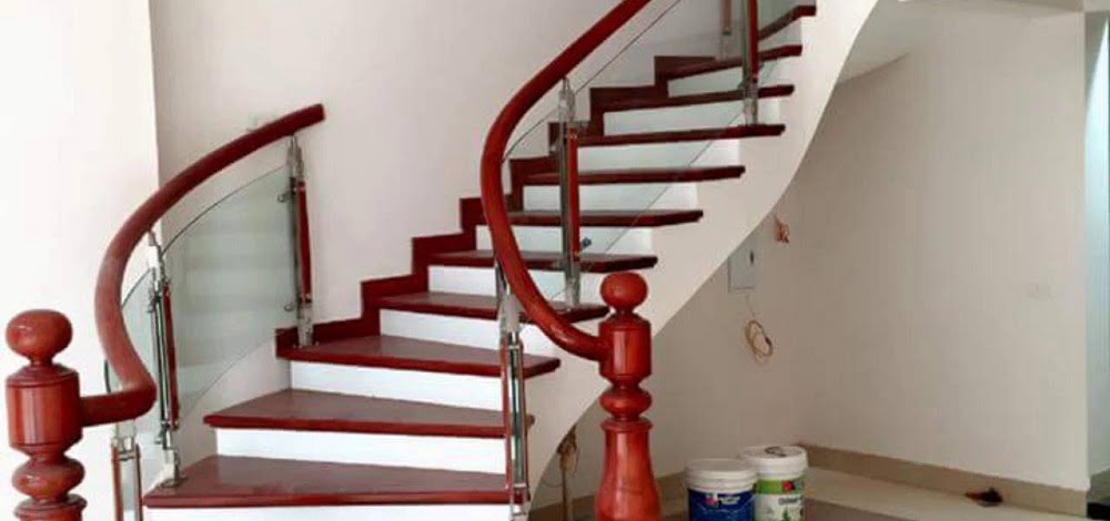 Top 100 mẫu cầu thang inox đẹp, Cầu thang inox tay vịn gỗ ở Hà Nội